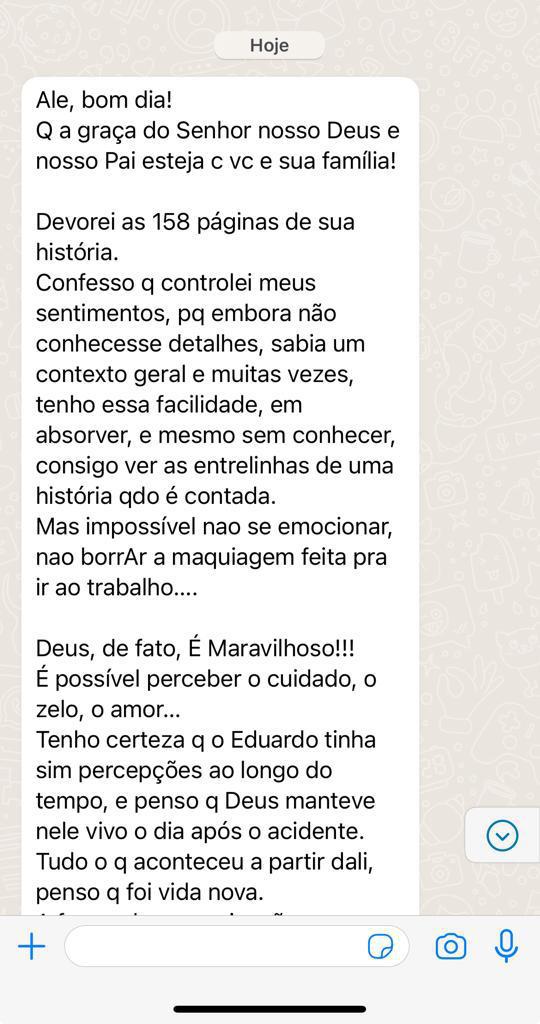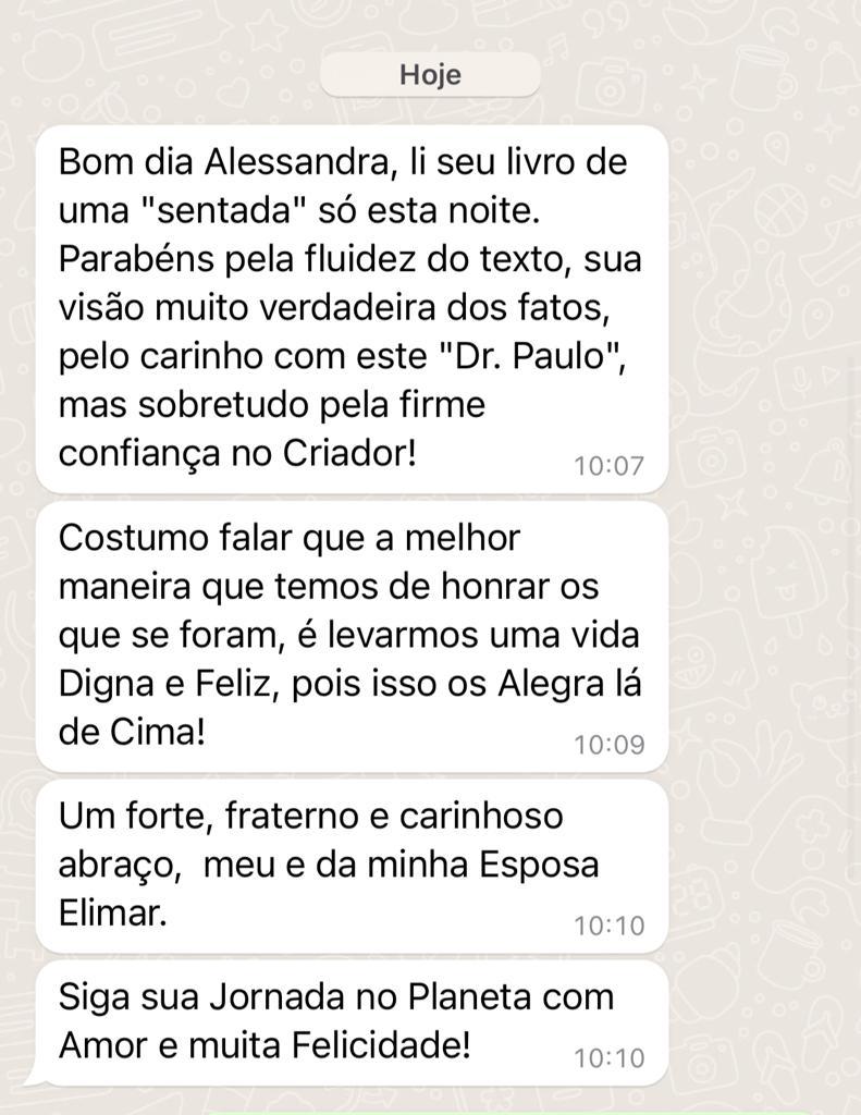 Prazer, meu nome é Alessa Dion. Sou mãe de duas filhas, pastora, escritora e palestrante. Também sou viúva de Eduardo Oliveira, com quem enfrentei com fé, esperança e amor, os dias mais difíceis de nossas vidas. Após esse tempo, dediquei-me a transcrever cada detalhe dessa jornada dolorosa, porém transformadora.
