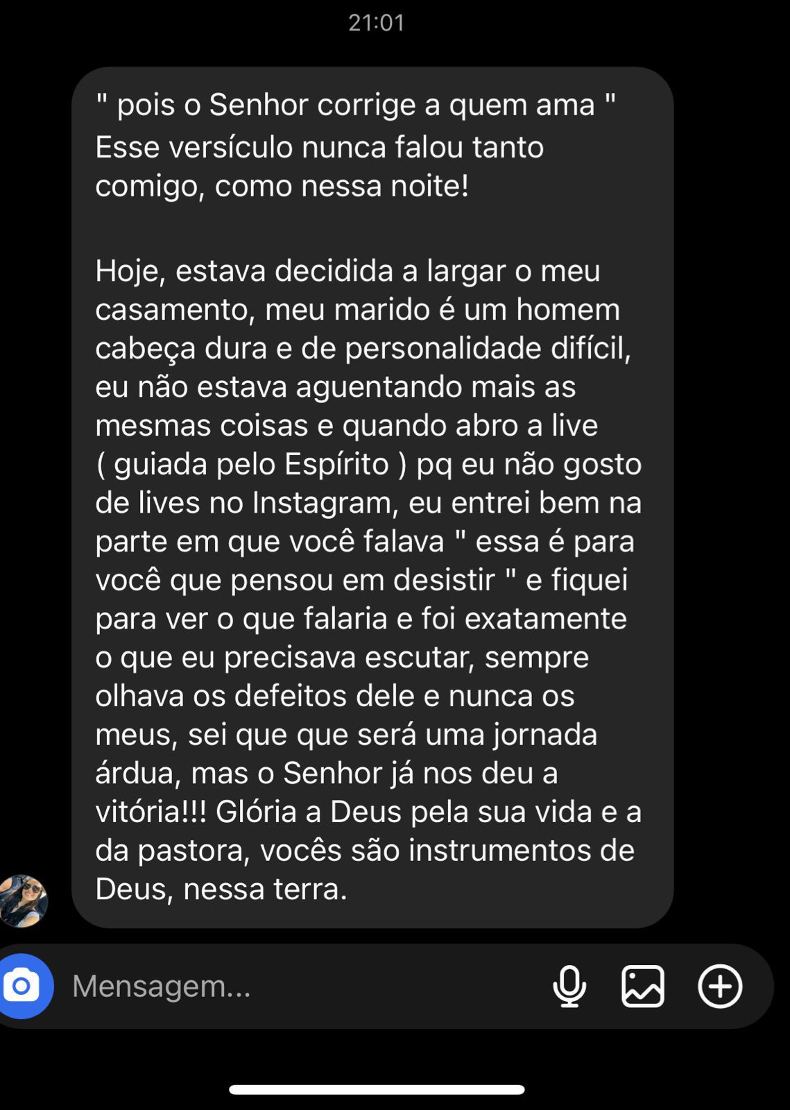 Ofereço palestras inspiradoras sobre amor, fé, superação e relacionamentos, baseadas em minha experiência como escritora, pastora e mulher.